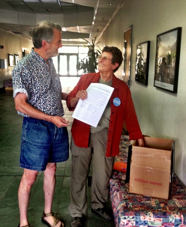 Karina Cotler of Willits, one of the Proponents of the Community Bill of Rights on the ballot as Measure S, turning in the petitions.