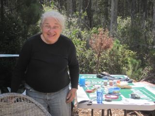 Carrie Durkee, the organizer of the signature gathering, with the box of signed petitions.